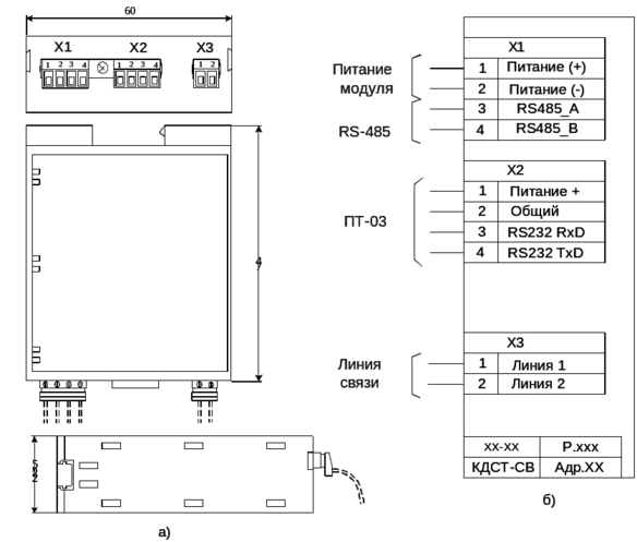 Х3 – для подключения КДСТ-СВ к линии связи;