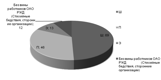 | Без вины работников ОАО РЖД (Стихийные бедствия, сторонние организации) | 12 | 5 | 7 | 140 |