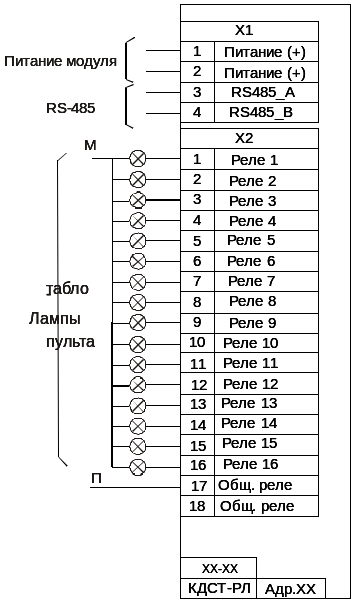Х2-1 – Х2-16 предназначены для подключения ламп пульта-табло;