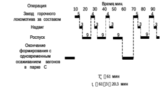Рисунок 1.1- Технологический график работы горки без параллельного роспуска с одним локомотивом
