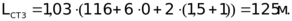 Расчёт длины кабеля от муфты СТ1 до муфты СТ3 по формуле (2.2):