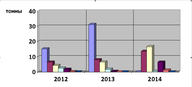 Объемы погрузки скоропортящихся грузов в рефрижераторных контейнерах за период с 2012 по 2014 год представлен в табл. 2.1 и на гистограмме (рис.1.1).