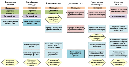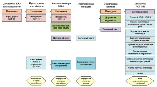ис. 5.4 Схема документооборота по завозу и отправлению контейнеров в АСУ КП: