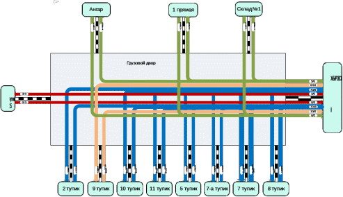 На сетке плана-графика графически отображена суточная работа грузового двора со всеми вагонами от момента прибытия до момента отправления в накопление на станцию Хабаровск II после выполнения грузовых операций; простой вагонов в сортировочном парке станции в ожидании подачи на грузовой двор; простой в ожидании выгрузки, погрузки и уборки вагонов на пути сортировочного парка.
