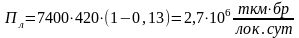 Производительность локомотива характеризует эффективность его использования и показывает количество работы, выполненной одним локомотивом за единицу времени. Эффективность использования локомотива зависит от массы поезда брутто, среднесуточного пробега локомотива, коэффициента вспомогательного пробега. Определяется по формуле
