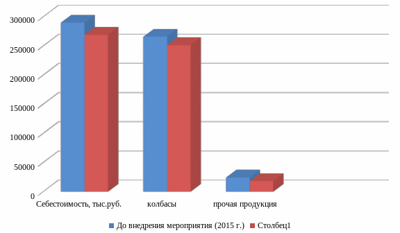 Экономический эффект от внедрения мероприятия в целом по себестоимости двух видов продукции составил 20688 тыс.руб., по товарной группе «Колбасы» - 14602 тыс.руб., а по товарной группе «Прочая продукция» 6086 тыс.руб.