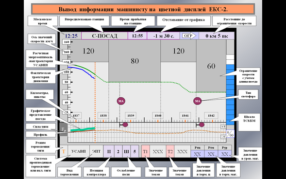 Рисунок 5.7 – Вид изображения с локомотивного монитора (интерфейс)
