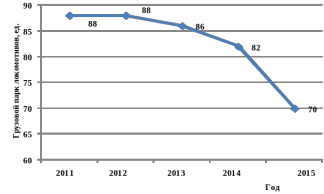 Рисунок 1.3 – Динамика снижения количества локомотивов в грузовом движении за период с 2011 по 2015 годы