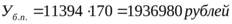 где: Мб.п.- масса безвозвратно потерянной нефти, т (принимается равной массе всей вытекшей нефти, так как во время пожара вся нефть сгорела, т.е. 170 т) [68];