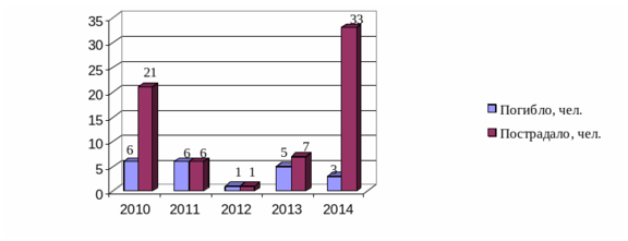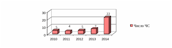Анализ чрезвычайных ситуаций и их последствий, как видно на рисунке 1.1, показывает, что в исследованный период их число остается стабильным и не превышает 5-7 в год, однако за 2014 год количество возникших ЧС увеличилось в 3,14 раза.