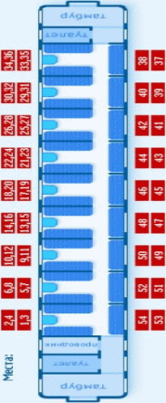 СХЕМА РАСПОЛОЖЕНИЯ МЕСТ В ПЛАЦКАРТНОМ ВАГОНЕ