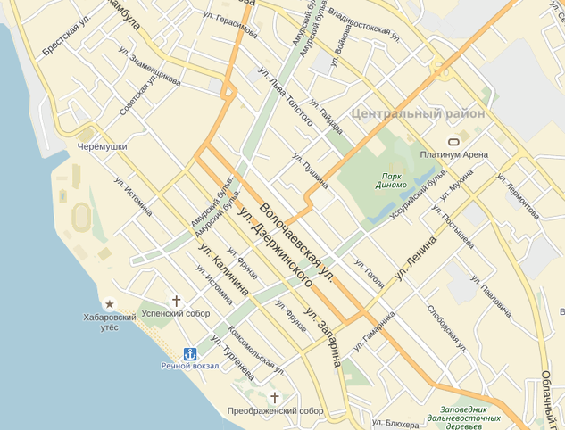 | Объекты показа | 3 | Спасо-Преображенский кафедральный собор Площадь Славы Градо-Хабаровский собор успения Божьей Матери Комплекс зданий торгового дома «Тифонтай и К». Универсальный магазин по ул. Инженерной Богданова Доходный Дом Плюснина Библиотека | |