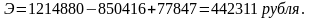Согласно статистических данных, применение обдува тяговых двигателей позволяет сократить возникновение межвиткового замыкания на 30 %. Как было сказано ранее за 2016 год допущено 100 случаев низкого сопротивления изоляции якорных и полюсных катушек при стоимости ущерба 1214880 рублей. Применение обдува сократит число отказов до 70 случаев при ущербе 850416 рублей. При этом каждый ремонт за счет обдува станет дороже на 1112,1 рубля. Общее повышение стоимости ремонта равно 77847 рублей. Таким образом, экономическая эффективность от применения обдува тяговых электродвигателей при сокращении на 30 % отказов равно: