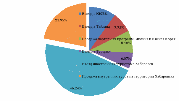 В 2014 г. наибольшей популярностью пользовались въездные туры для иностранных туристов на территорию Хабаровска (46%). Основной сегмент потребителей въездных туров – туристы из КНР.