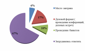 Другие посетители, высказываются по поводу, одобрения в пользу, сдержанности и минимализма в интерьере, так как, это подходит предприятию, которое теперь организовывает деловые встречи и конференции и отвечает современным тенденциям обслуживания. До проведения ребрендинга, сегмент потребителей составлял молодежь и банкеты по проведению свадеб. На сегодняшний день мнения гостей об образе ресторана разделились, но проблемой остается то что, не сформирован единный образ ресторана (рис.2.16).