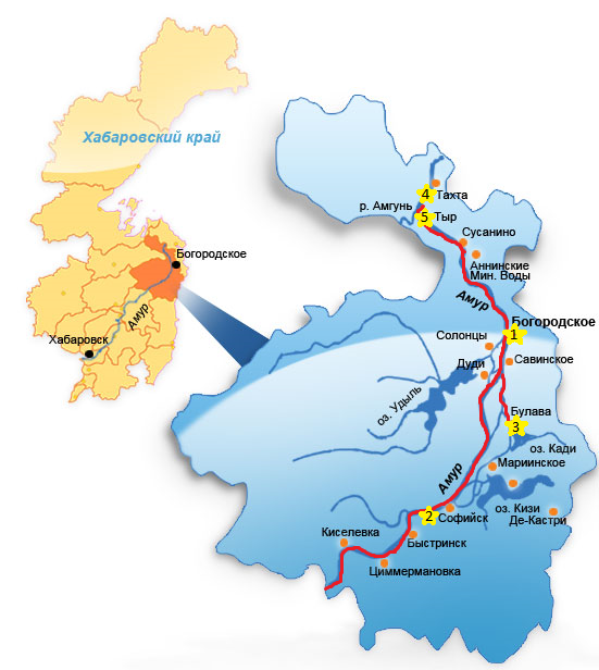 | Маршрут тура | г.Хабаровск – с. Богородское – с.Калиновка - с.Булава – пос. Кальма - пос. Тыр - с. Богородское - г.Хабаровск |