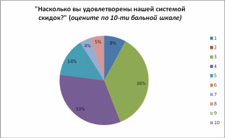 Рис.2.7 «Насколько вы удовлетворены нашей системой скидок?" (оцените по 10-ти бальной шкале)»