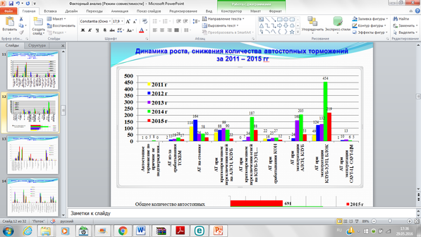 Рисунок 5.5 – Динамика количества автостопных торможений 2011 – 2015 гг
