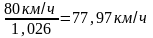 С учётом поправки на износ бандажа определяем фактическую скорость при скорости 80 км/ч, записанной на скоростемерной ленте: