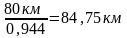 С учётом поправки на износ бандажа определяем фактическое расстояние пройденное локомотивом, когда на ленте зафиксированно расстояние 80 км: