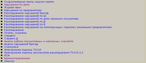 - статистика по расшифровке скоростемерных лент по депо; по лентам, по выявленным нарушениям;