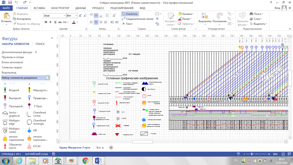 Номограммы для расшифровки скоростемерных (диаграммных) лент должны изготавливаться на основе компьютерных технологий с разработкой программного обеспечения и должны отвечать следующим требованиям: номограммы должны быть четкими, читаемыми и не утомлять зрение расшифровщиков; содержать максимум точной и отслеживаемой информации, для чего должен быть создан банк исходных данных (профиля пути, обрывных мест, ординат светофоров, стрелочных переводов, ПОНАБов, УКСПС, охраняемых и неохраняемых железнодорожных переездов); иметь возможность мобильного внесения изменений и нового изготовления номограмм при изменении исходных данных. Номограмма для расшифровки скоростемерных лент представлена на рисунке 4.16.