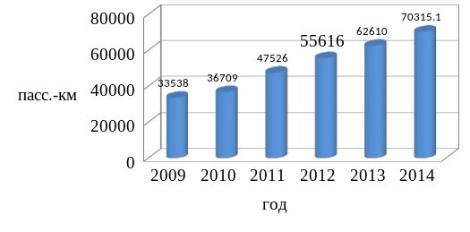 в 2014 году, составил 70 315 пасс.-км (рост по сравнению с 2013 годом на 12,3%);
