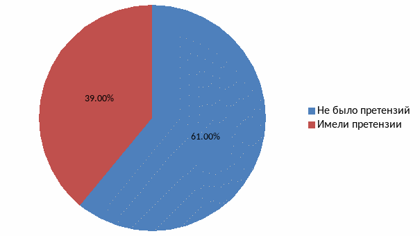 Если вывести средние показатели за два проводимых праздника можно сказать, что претензии имелись у 39% респондентов. Из них только 16% предъявили её после возникновения.