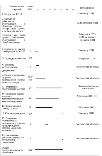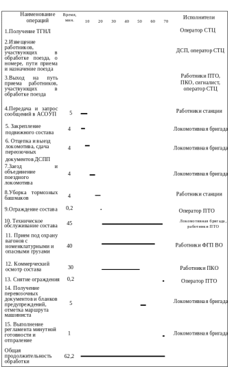 Рис. 3.2. График обработки транзитного поезда со сменой локомотивной бригады