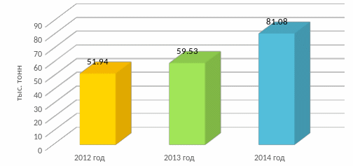 Проведя анализ объемов погрузки замороженной рыбы установлено, что по сравнению с 2012 годом объемы перевозки увеличились в 2013 году на 15%, а в 2014 году на 55 % по сравнению с 2012 годом.