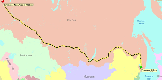 Рис. 1.2. Схема направления перевозок замороженной рыбы Угольная-Селятино