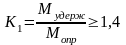 где К1≥1,4 допустимое значение грузовой устойчивости крана, не учитывающий уклон пути.