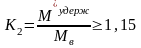 где К2≥1,15 допустимое значение коэффициента собственной устойчивости козлового крана.