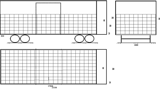 Технические характеристики 20-футового рефрижераторного контейнера идлиннобазной платформыдля его перевозки приведены соответственно в табл. 2.1 и 2.2, служебного вагона от 5-вагонной секции типаZB-5 соответственно в табл.2.3, а 5-вагонной секции БМЗ – в табл. 2.4.