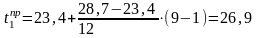 –расчетная температура наружного воздуха на момент прибытия поезда на следующую за расчетным участком станцию, °C.