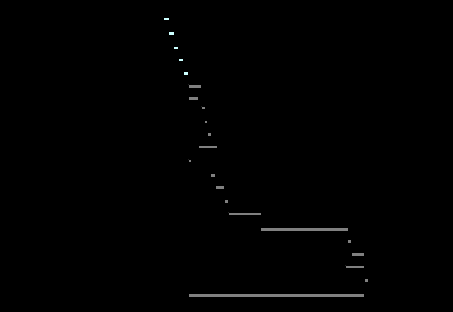 Рис. 2.7. Технологический график обработки нечетного сборного поезда с отцепкой и прицепкой вагонов в хвостовой части состава