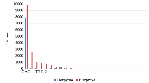 | Дата | Выгрузка, ваг | Погрузка, ваг |
