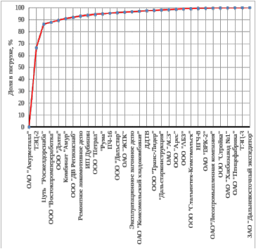 Рис. 2.1. Доля путей необщего пользование в погрузке