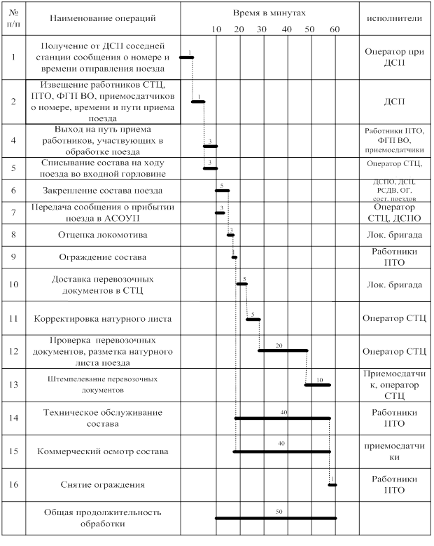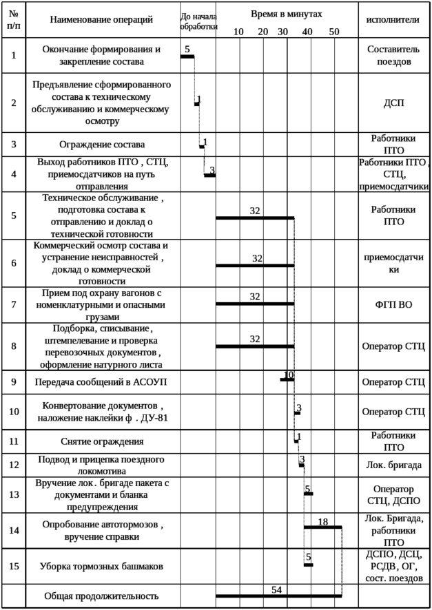 Рис. 3.1. Технологический график обработки поезда поступающего в расформирование