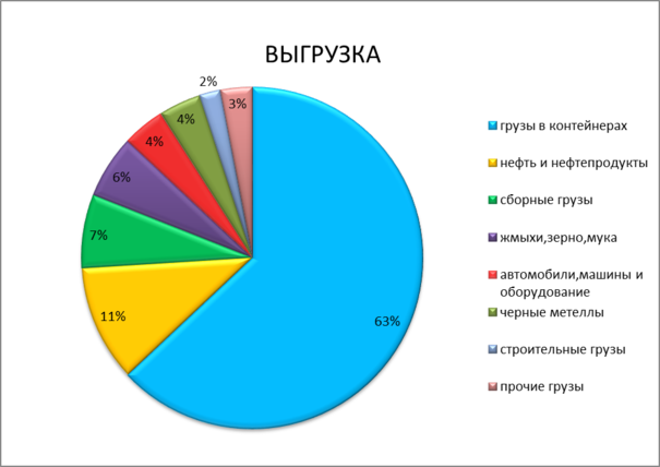 На основании статистических данных табл. 5.1 построим диаграмму выгрузки (погрузки) по станции Красная речка по роду груза рис. 5.1, рис. 5.2.