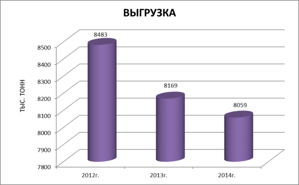 Анализ объемов погрузки и выгрузки станции с 2012 по 2014 год представлен на рис. 5.3 и 5.4.