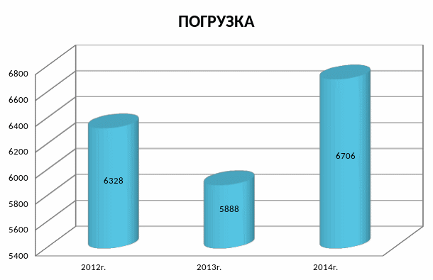 Анализ объемов погрузки и выгрузки станции с 2012 по 2014 год представлен на рис. 5.3 и 5.4.