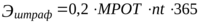 Расчёт экономии от сокращения выплат по штрафам произведём по формуле (6.8). За задержку уборки вагонов с мест погрузки грузов по вине перевозчика, перевозчик уплачивает ветвевладельцу штраф в размере 0,2 размера МРОТ за каждый час задержки каждого вагона.