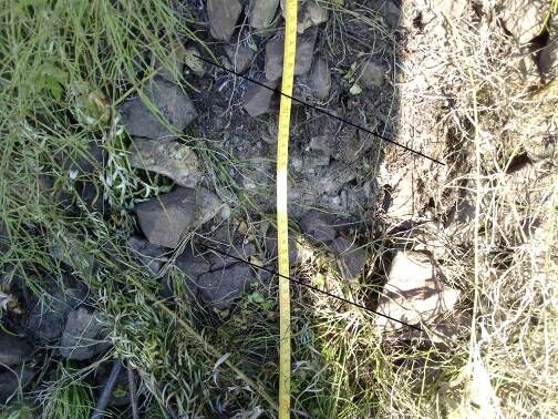 В пределах ПК7 в верхней части балластного шлейфа наблюдаются продольные трещины раскрытием до 20 мм, ближайшая расположена на расстоянии 3,0 – 3,5 м в плане, и 0,7 – 1,0 м по высоте от уровня наружной головки рельса. На ПК6+30, в районе рельсового стыка, трещина имеет стенку отрыва высотой 200 мм (рис. 4.2).
