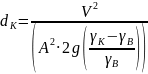 Размер камня dк укрепления русла каменной наброской с подгорной стороны определяется воздействием на укрепление течения воды из трубы и определяется по формуле