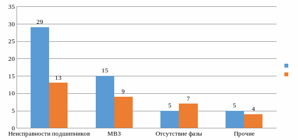 - чрезмерный нагрев двигателя. Вероятной причиной этого может быть межвитковое замыкание в обмотке статора. Данная неисправность устраняется путем замены двигателя. Другая причина данной неисправности вероятна при перегрузке двигателя, в этом случае необходимо определить и устранить данную причину. Так же данная неисправность может быть вызвана неисправными подшипниками, что требует ремонта в объеме ТР-3;