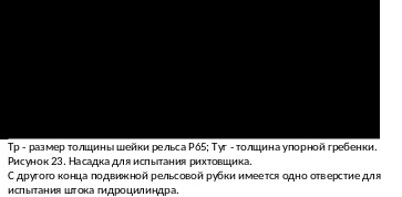 Диаметры отверстия в швеллерах и серьгах сверлятся под диаметр пальцев. К подвижному швеллеру привариваются два уголка на расстоянии 55мм друг от друга. Они нужны для того, чтобы удерживать рельсовую подвижную рубку при испытании инструмента в нужном направлении. Выше они были отмечены как направляющие. В направляющих перемещается рельсовая рубка длиной 500мм. Она имеет с одной стороны на шейке два отверстия для установки насадки. Насадка служит для упорной гребенки рихтовщика при испытании. Она представлена на рисунке 23.