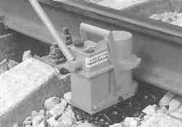 С их помощью восстанавливают нормальные стыковые зазоры, нарушенные в процессе эксплуатации пути. От стыка к стыку прибор перемещают по головке рельса на роликах. Приборы устанавливают над стыком и закрепляют рычагами с помощью зажимных клиньев за головки рельсов (рис. 6).