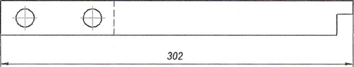Диаметры отверстия в швеллерах и серьгах сверлятся под диаметр пальцев. К подвижному швеллеру привариваются два уголка на расстоянии 55мм друг от друга. Они нужны для того, чтобы удерживать рельсовую подвижную рубку при испытании инструмента в нужном направлении. Выше они были отмечены как направляющие. В направляющих перемещается рельсовая рубка длиной 500мм. Она имеет с одной стороны на шейке два отверстия для установки насадки. Насадка служит для упорной гребенки рихтовщика при испытании. Она представлена на рисунке 23.