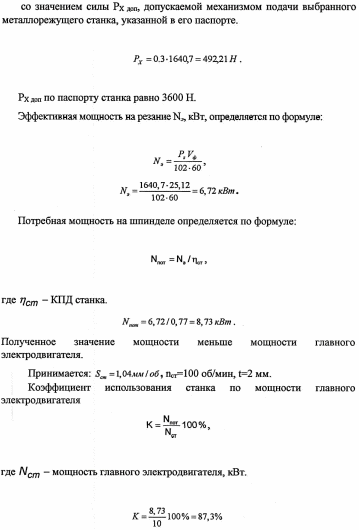 Проверяется возможность осуществления полученной скорости резания на выбранном станке. Для этого находится значение расчетной частоты вращения шпинделя nр, об/мин,